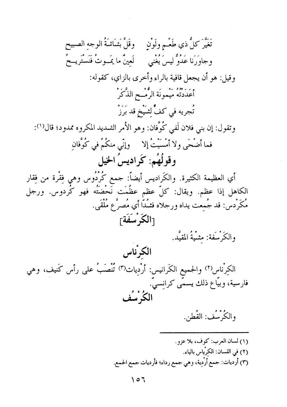الكرناس والجميع الكرانيس: أرديات تنصب على رأس كنيف، وهي فارسية، وبياع ذلك يسمى كرانسي.