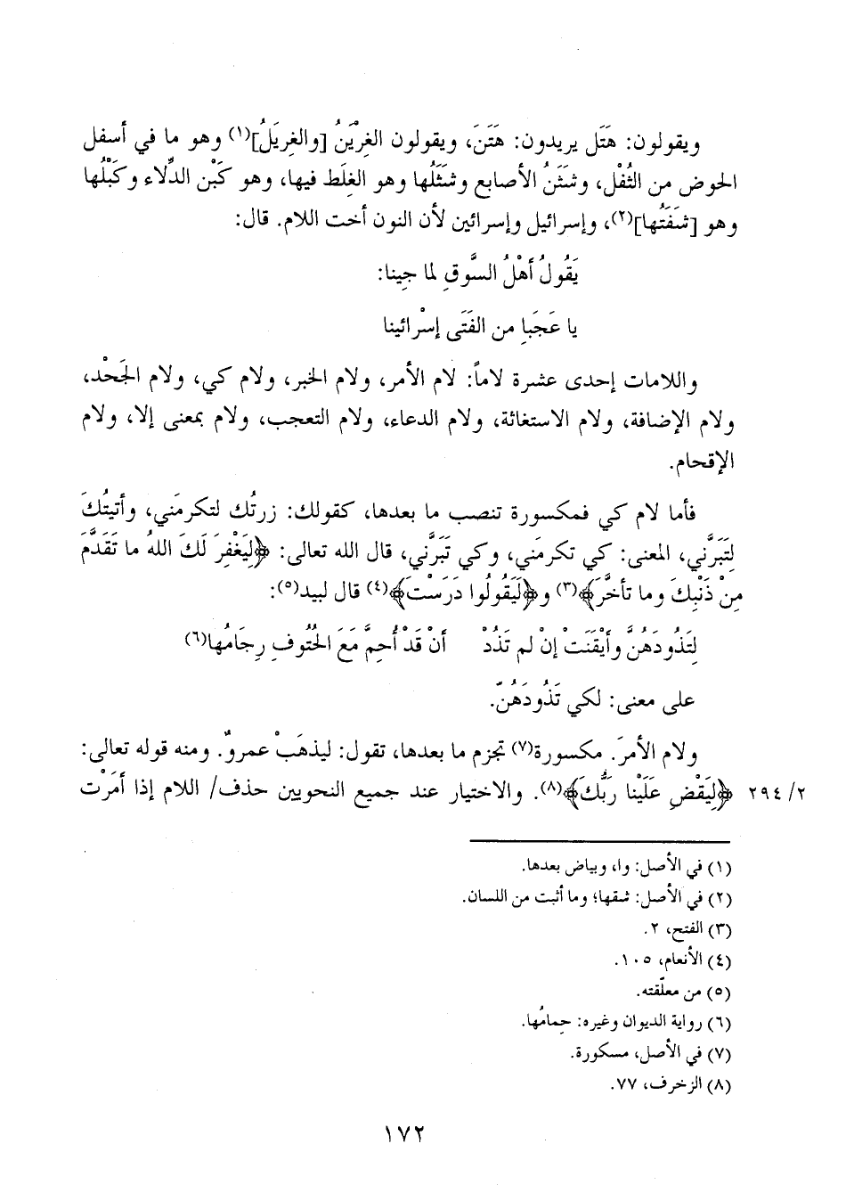 واللامات إحدى عشرة لاماً: لام الأمر، ولام الخبر، ولام كي، ولام الجَحْد، ولام الإضافة، ولام الاستغاثة، ولام الدعاء، ولام التعجب، ولام بمعنى إلا، ولام الإقحام.