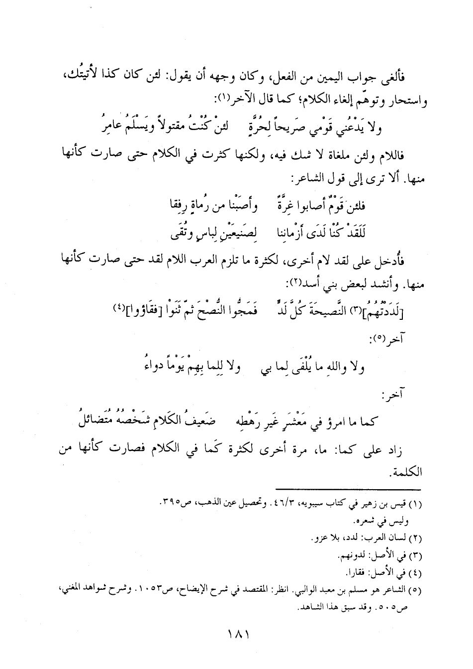 فاللام ولئن ملغاة لا شك لحرة ... لئن كنت مقتولاً ويسلم عامر