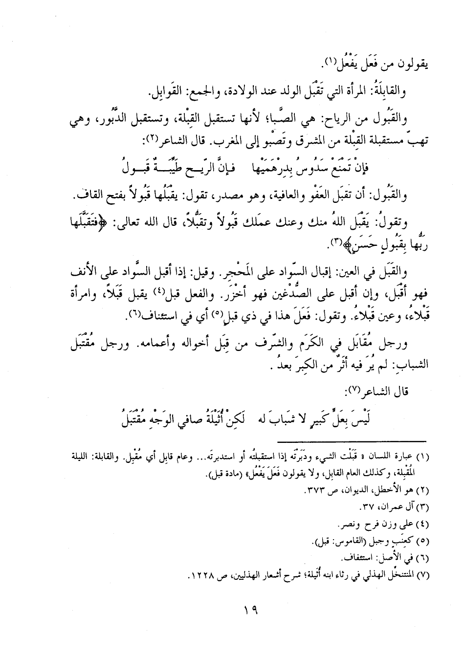 والقبول من الرياح: هي الصبا؛ لأنها تستقبل القِبْلة، وتستقبل الدبور، وهي تهب مستقبلة القِبْلة من الشمرق وتصبو إلى المغرب. قال الشاعر: