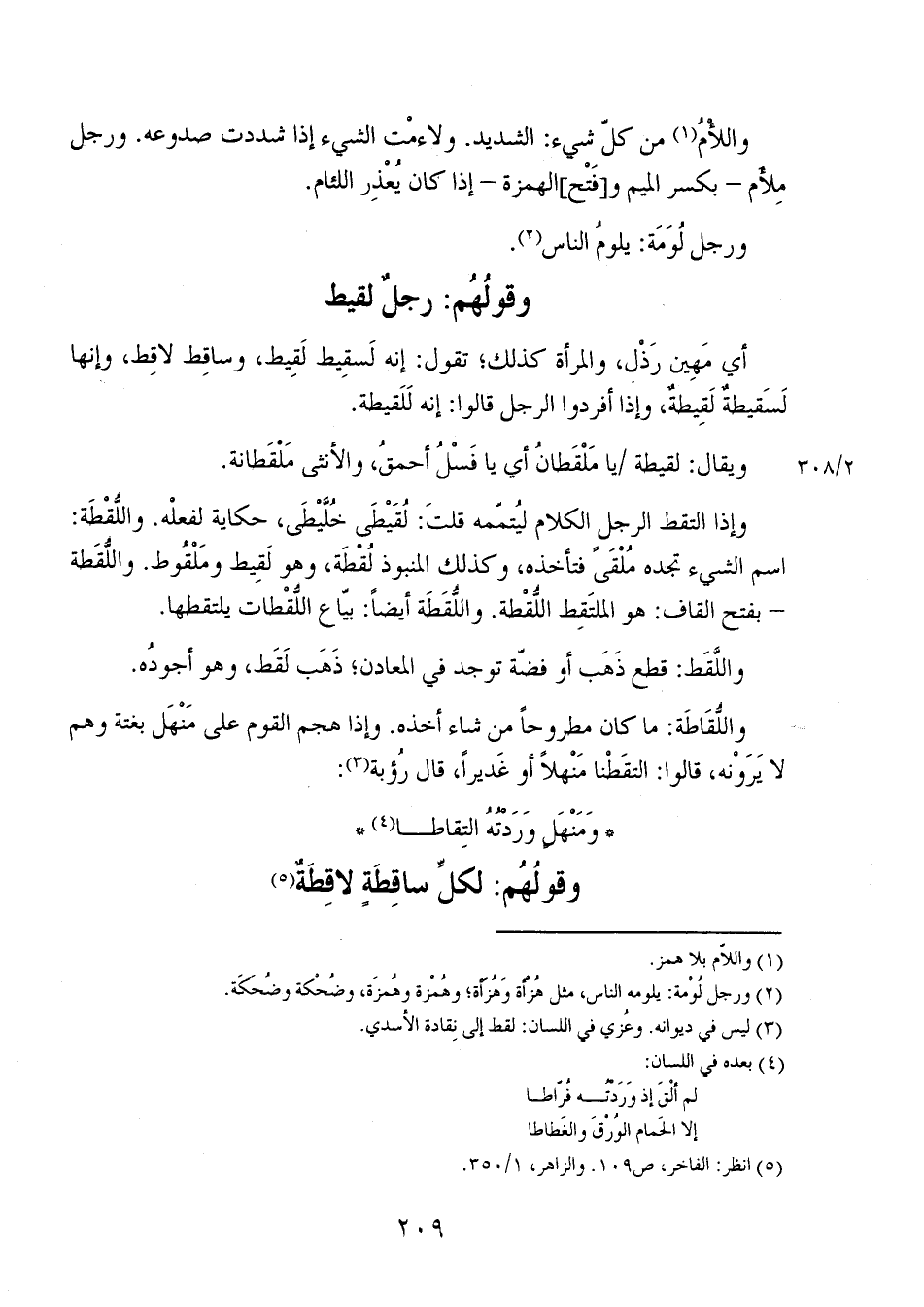 وإذا التقط الرجل الكلام ليتممه قلت: لُقَيْطَى خَلَّيْطَى، حكاية لفعله. واللقطة: اسم الشيء تجده ملقى فتأخذه، وكذلك المنبوذ لُقطة، وهو لقيط وملقوط. واللقطة- بفتح القاف: هو الملتقط اللقطة. واللقطة أيضاً: بياع اللقطات يلتقطها.
