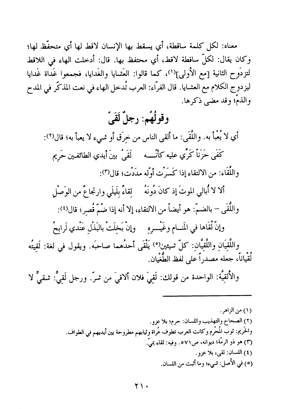وقولهم: رجل لَقَىً