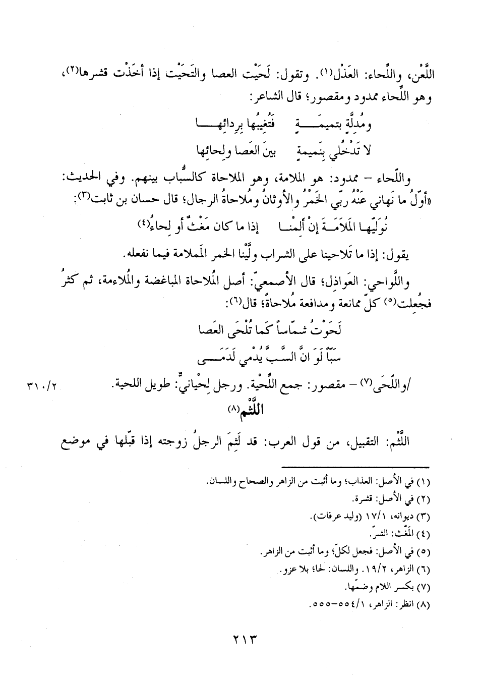 واللحى- مقصور: جمع اللحية. ورجل لحياني: طويل اللحية.