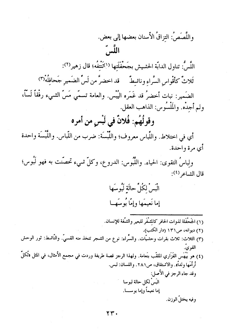 اللس: تناول الدابة الحشيش بجحفلتها تنتفه؛ قال زهير: