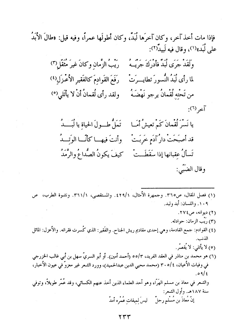 يا نسر لقمان كم تعيش أما ... تمل طول الحياة يا لبد