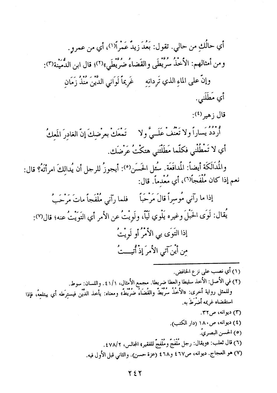 ومن أمثالهم: الأخذ سُرَّيطى والقضاء ضرَّيْطَي"؛ قال ابن الدمينة: