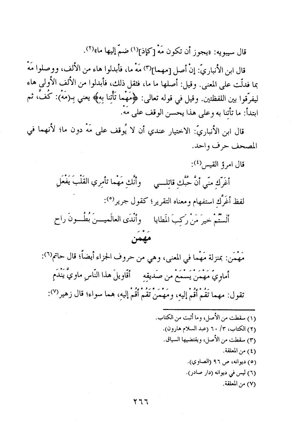 مهمن: بمنزلة مهما في المعنى، وهي من حروف الجزاء أيضاً؛ قال حاتم: