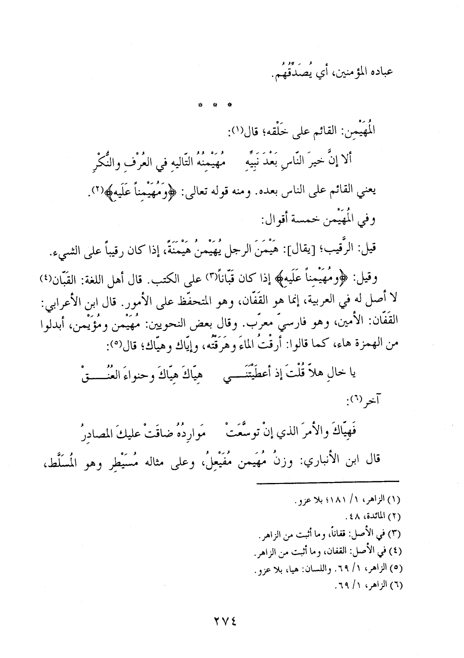وقيل: {وَمُهَيْمِناً عَلَيْهِ} إذا كان قباناً على الكتب. قال أهل اللغة: القبّان لا أصل له في العربية، إنما هو القفّان، وهو المتحفظ على الأمور. قال ابن الأعرابي: القفان: الأمين، وهو فارسي معرب. وقال بعض النحويين: مهيمن ومؤيمن، أبدلوا من الهمزة هاء، كما قالوا: أرقت الماء وهرقته، وإياك وهياك؛ قال: