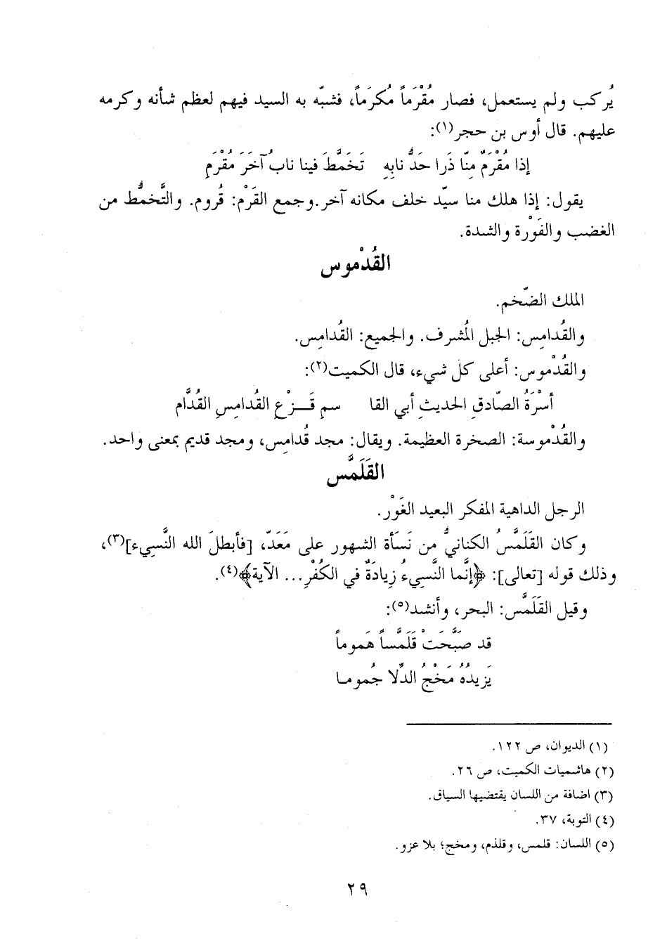 والقُدموس: أعلى كل شيء، قال الكميت: