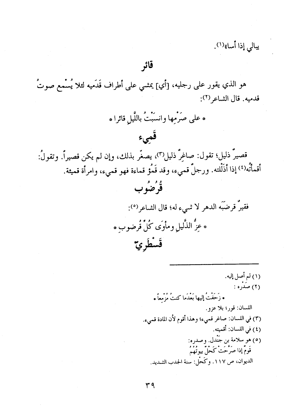 هو الذي يقور على رجليه، [أي] يمشي على أطراف قدميه لئلا يسمع صوت قدميه. قال الشاعر: