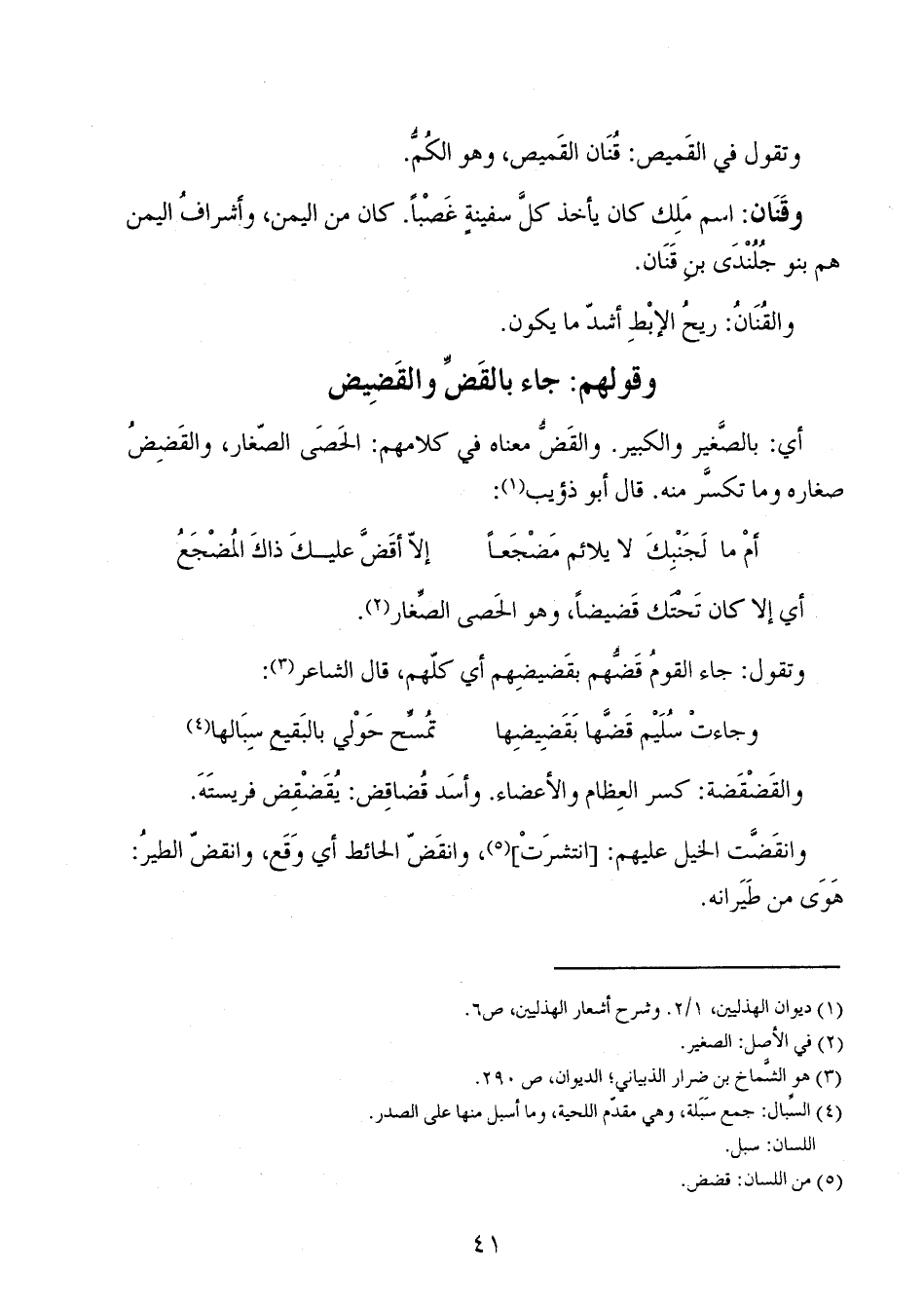 وتقول: جاء القوم قضُّهم بقضيضهم أي كلهم، قال الشاعر: