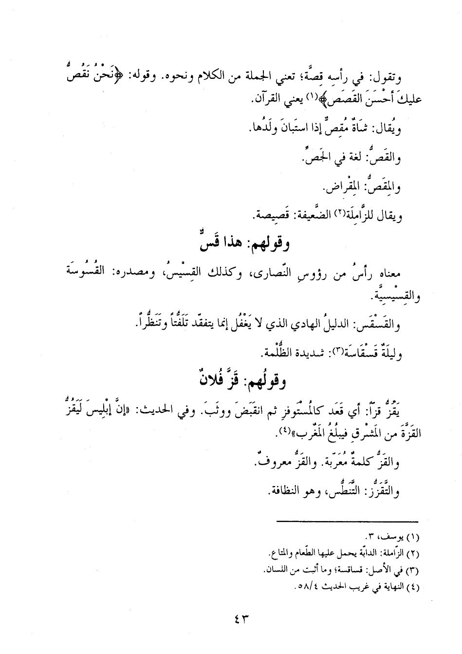 معناه رأس من رؤوس النصارى، وكذلك القسيس، ومصدره: القسوسة والقسيسية.
