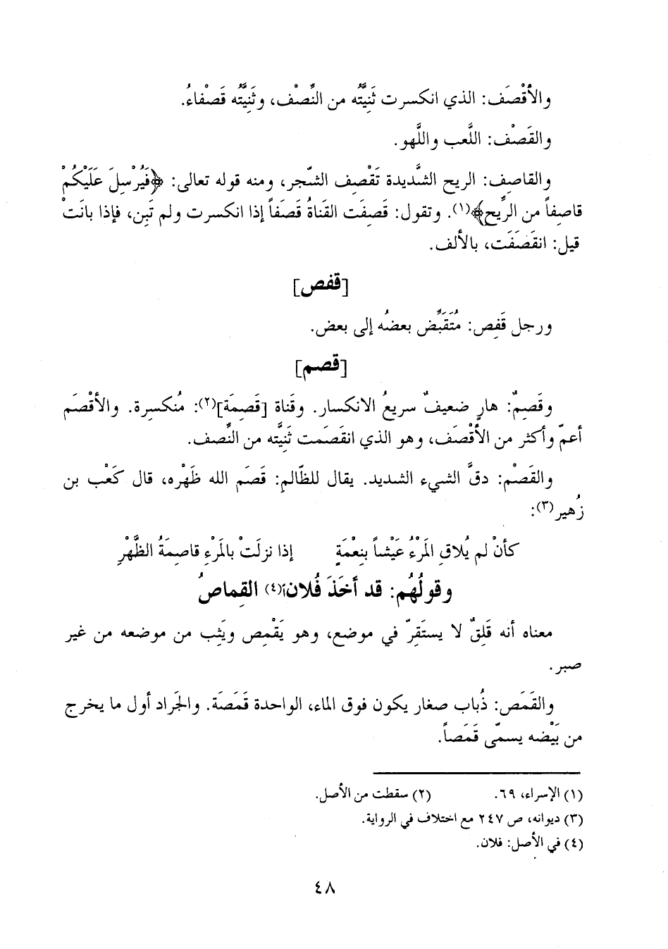 والقصم: دق الشيء الشديد. يقال للظالم: قصم الله ظهره، قال كعب بن زهير: