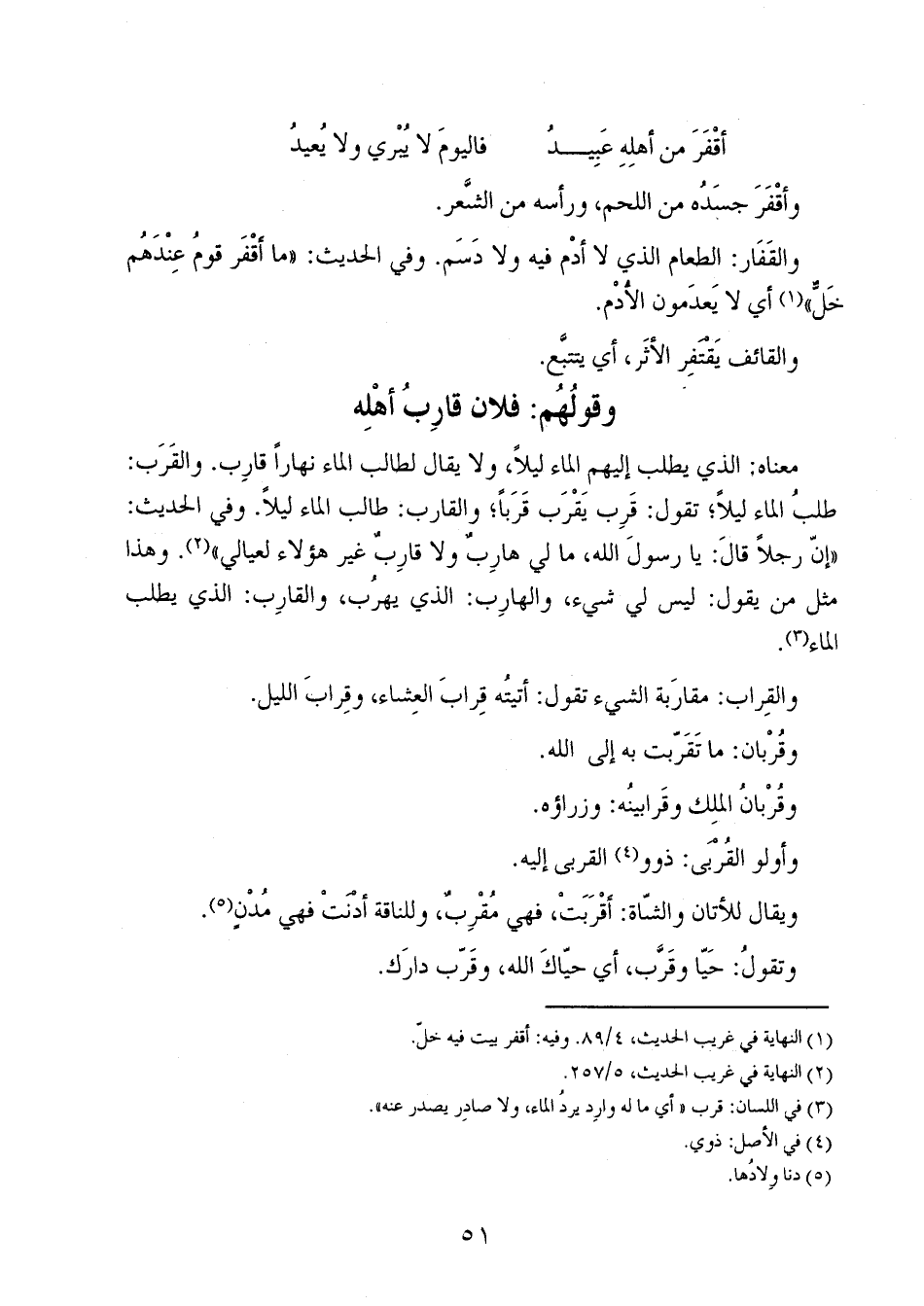 معناه: الذي يطلب إليهم الماء ليلاً، ولا يقال لطالب الماء نهاراً قارب. والقَرَب: طلب الماء ليلاً؛ تقول: قَرِب يقرب قرباً؛ والقارب: طالب الماء ليلاً. وفي الحديث: "إن رجلاً قال: يا رسول الله، ما لي هارب ولا قارب غير هؤلاء لعيالي". وهذا مثل من يقول: ليس لي شيء، والهارب: الذي يهرب، والقارب: الذي يطلب الماء.