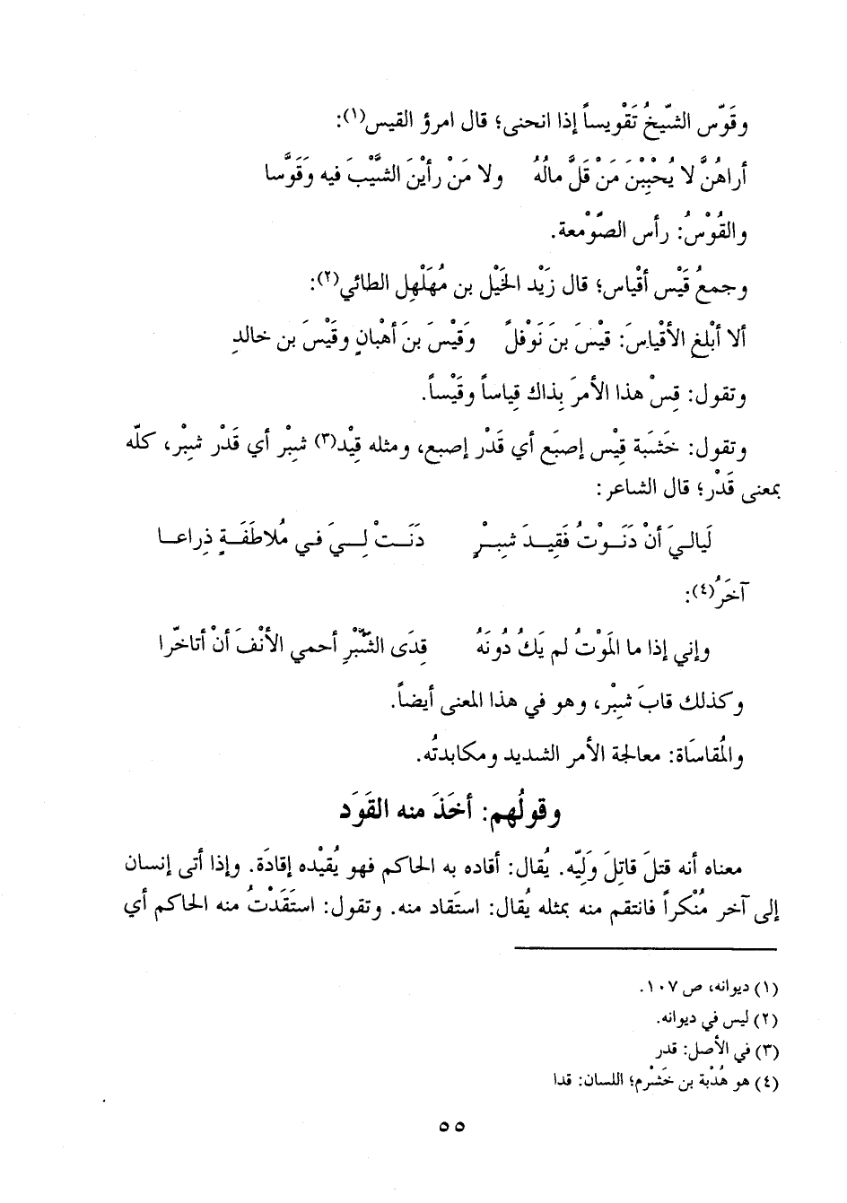 وتقول: خشبة قيس إصبع أي قدر إصبع، ومثله قيد شبر أي قدر شبر، كله بمعنى قَدْر؛ قال الشاعر: