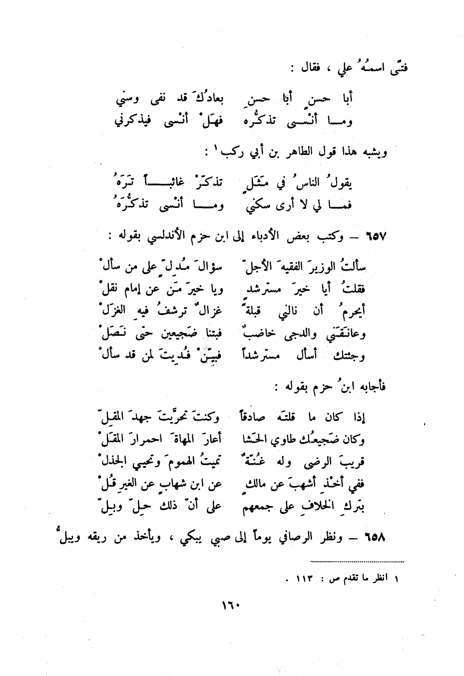 657 - وكتب بعض الأدباء إلى ابن حزم الأندلسي بقوله: