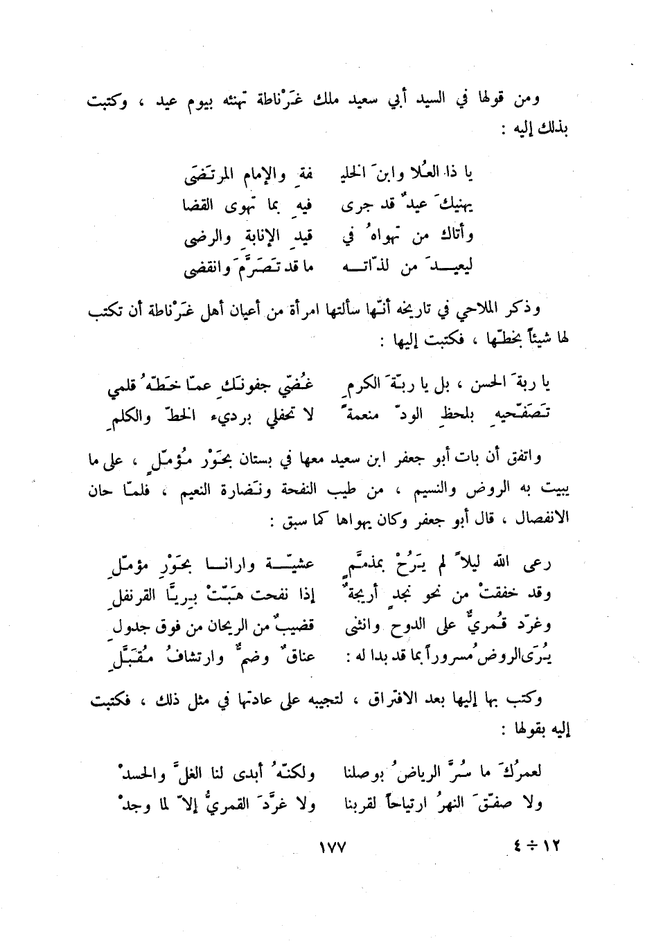 ومن قولها في السيد أبي سعيد ملك غرناطة تهنئه بيوم عيد، وكتبت بذلك إليه: