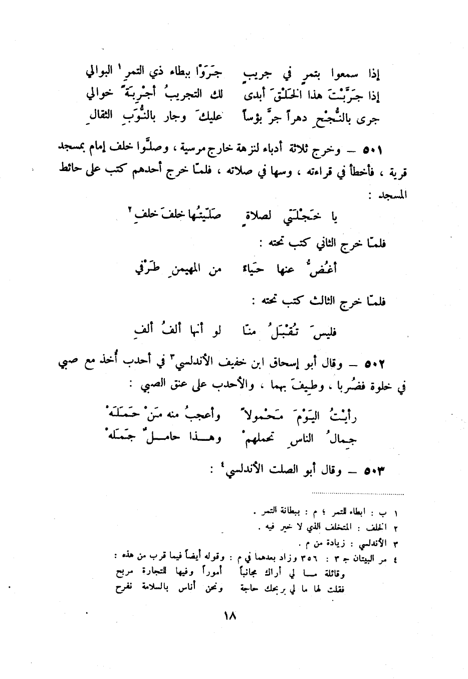 501 - وخرج ثلاثة أدباء لنزهة خارج مرسية، وصلوا خلف إمام بمسجد قرية، فأخطأ في قراءته، وسها في صلاته، فلما خرج أحدهم كتب على حائط المسجد: