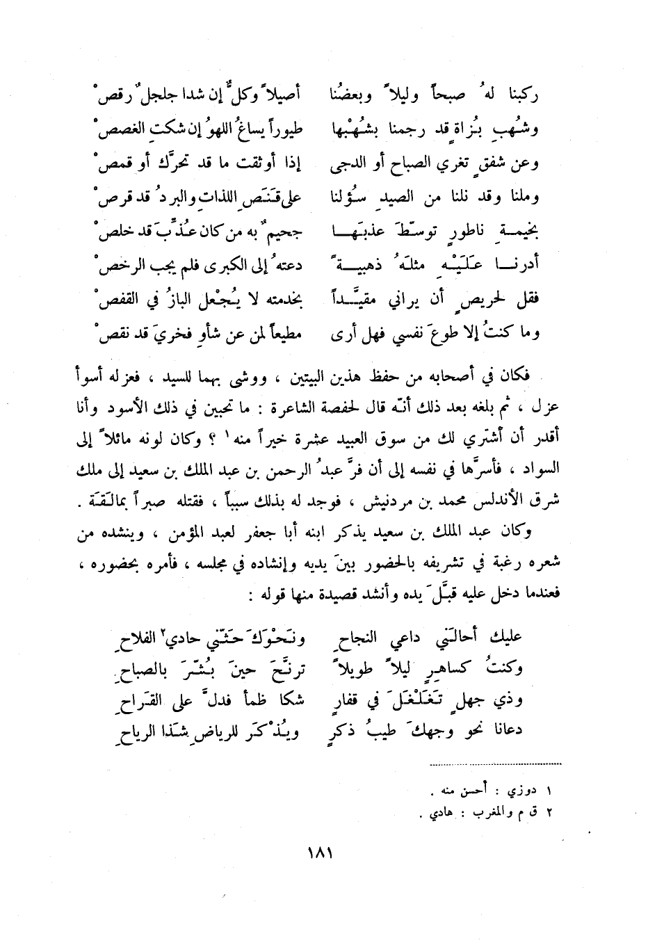 عليك أحالني داعي النجاح ... ونحوك حثني حادي (2) الفلاح وكنت كساهر ليلا طويلا ترنح حين بشر بالصباح