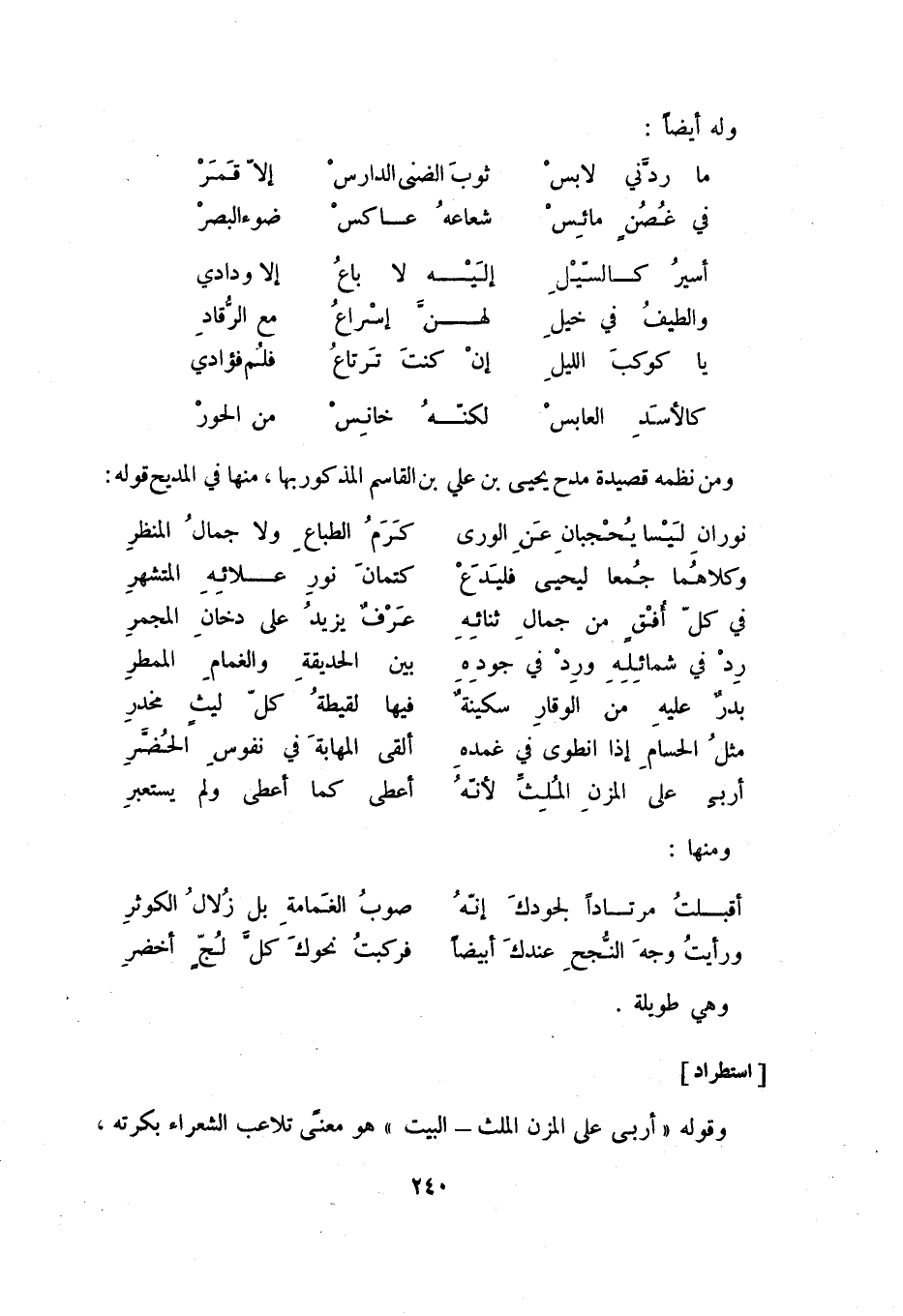 ومن نظمه قصيدة مدح يحيى بن علي بن القاسم المذكور بها، منها في المديح قوله: