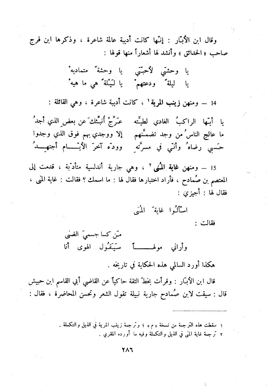 14 - ومنهن زينب المرية (1) ، كانت أديبة شاعرة، وهي القائلة: