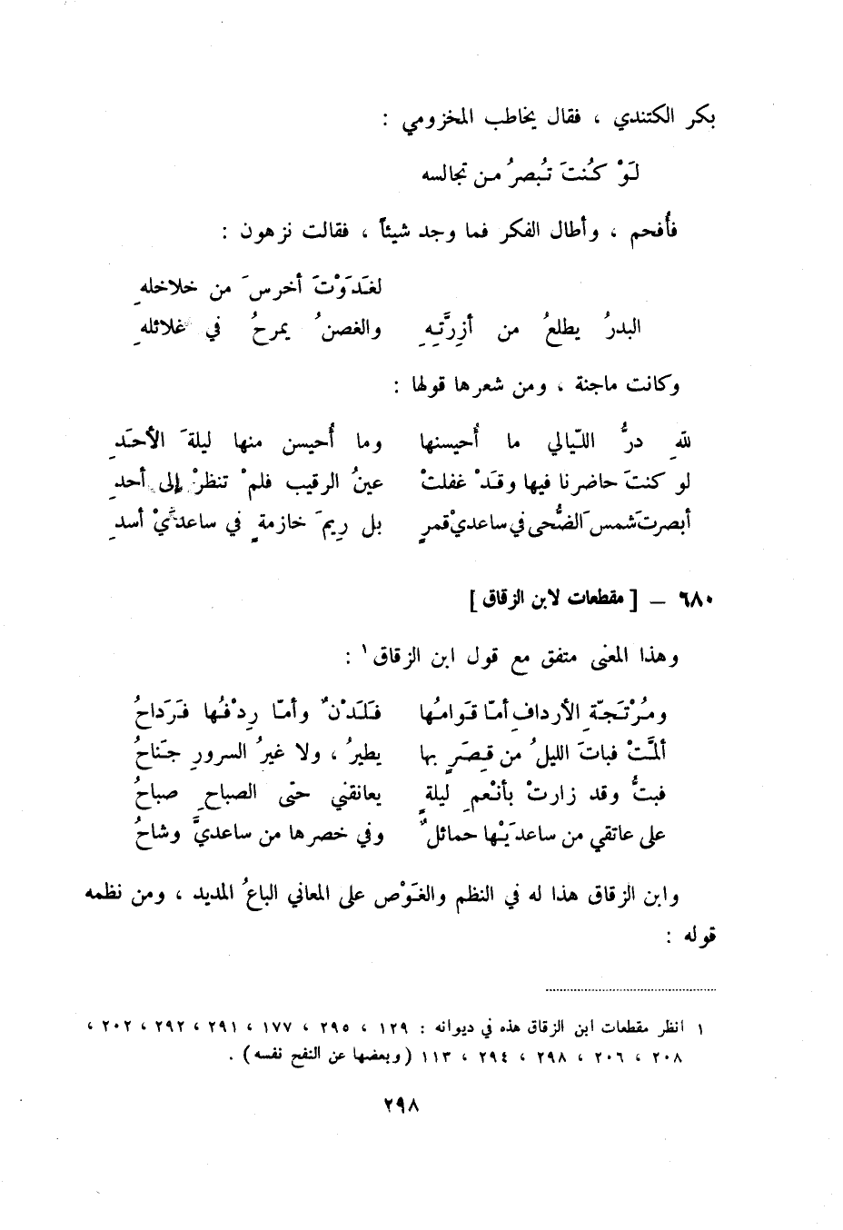 (1) انظر مقطعات ابن الزقاق هذه في ديوانه: 129، 295، 177، 291، 292، 202، 208، 206، 298، 294، 113 (وبعضها عن النفح نفسه) .