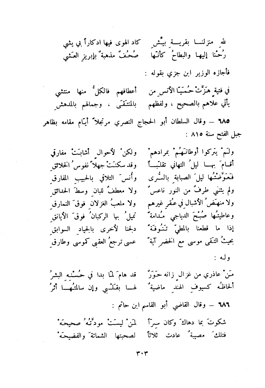 685 - وقال السلطان أبو الحجاج النصري مرتجلاً أيام مقامه بظاهر جبل الفتح سنة 815: