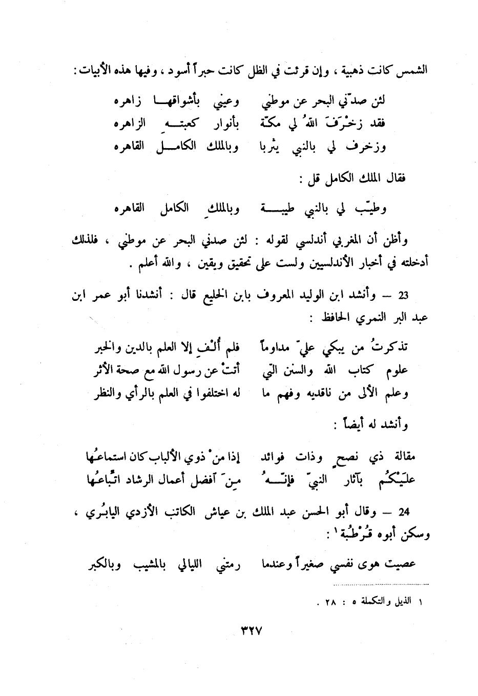 23 - وأنشد ابن الوليد المعروف بابن الخليع قال: أنشدنا أبو عمر ابن عبد البر النمري الحافظ: