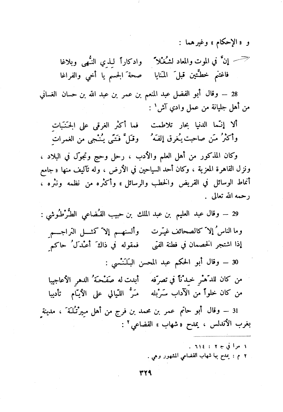 31 - وقال أبو حاتم عمر بن محمد بن فرج من أهل ميرتلة، مدينة بغرب الأندلس، يمدح شهاب الأندلس، يمدح شهاب القضاعي (2) :