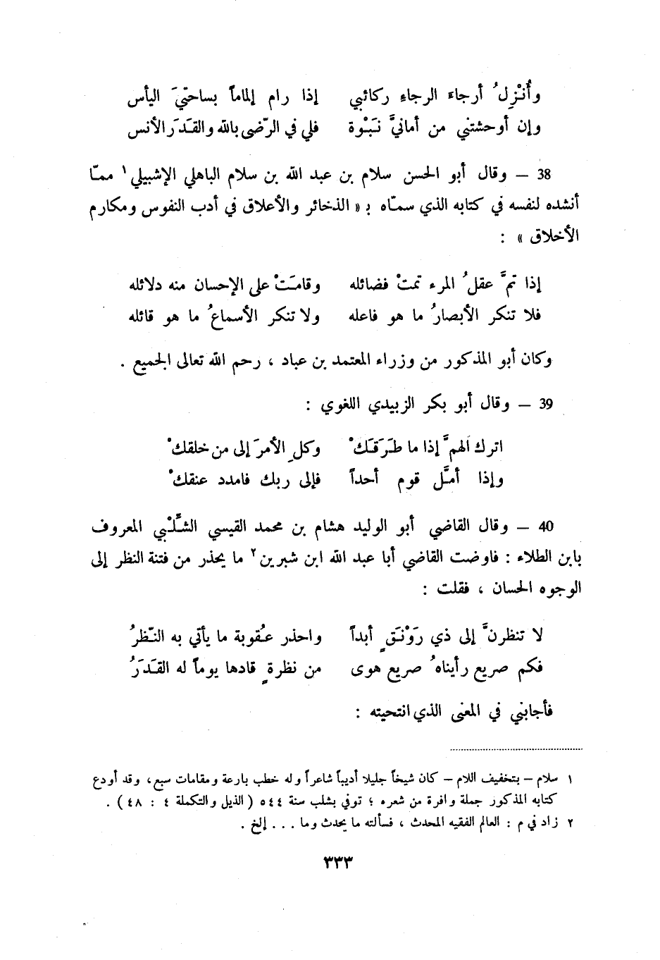 38 - وقال أبو الحسن سلام بن عبد الله بن سلام الباهلي الإشبيلي (1) مما أنشده لنفسه في كتابه الذي سماه الذخائر والأعلاق في أدب النفوس ومكارم الأخلاق: