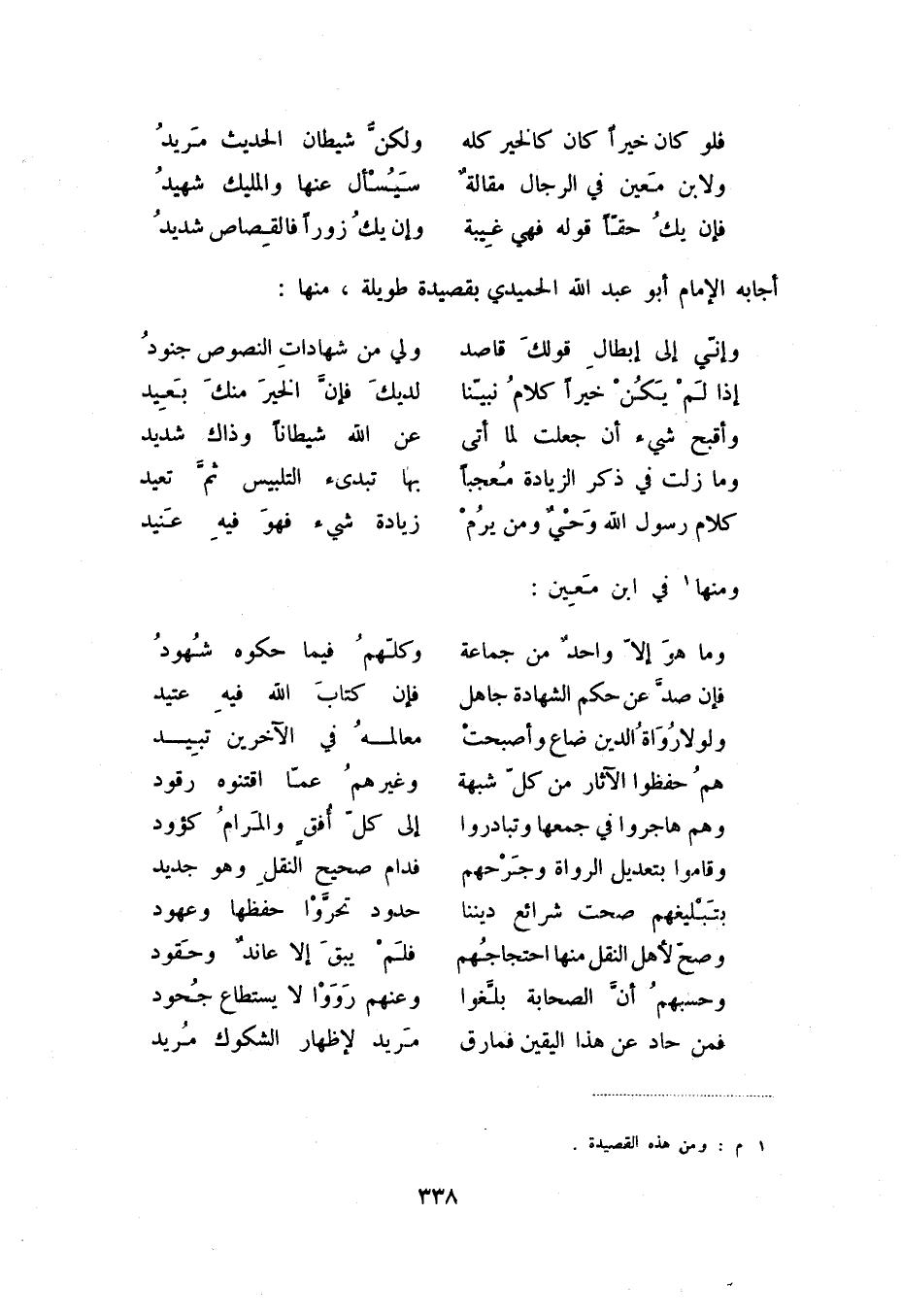 أجابه الإمام أبو عبد الله الحميدي بقصيدة طويلة، منها: