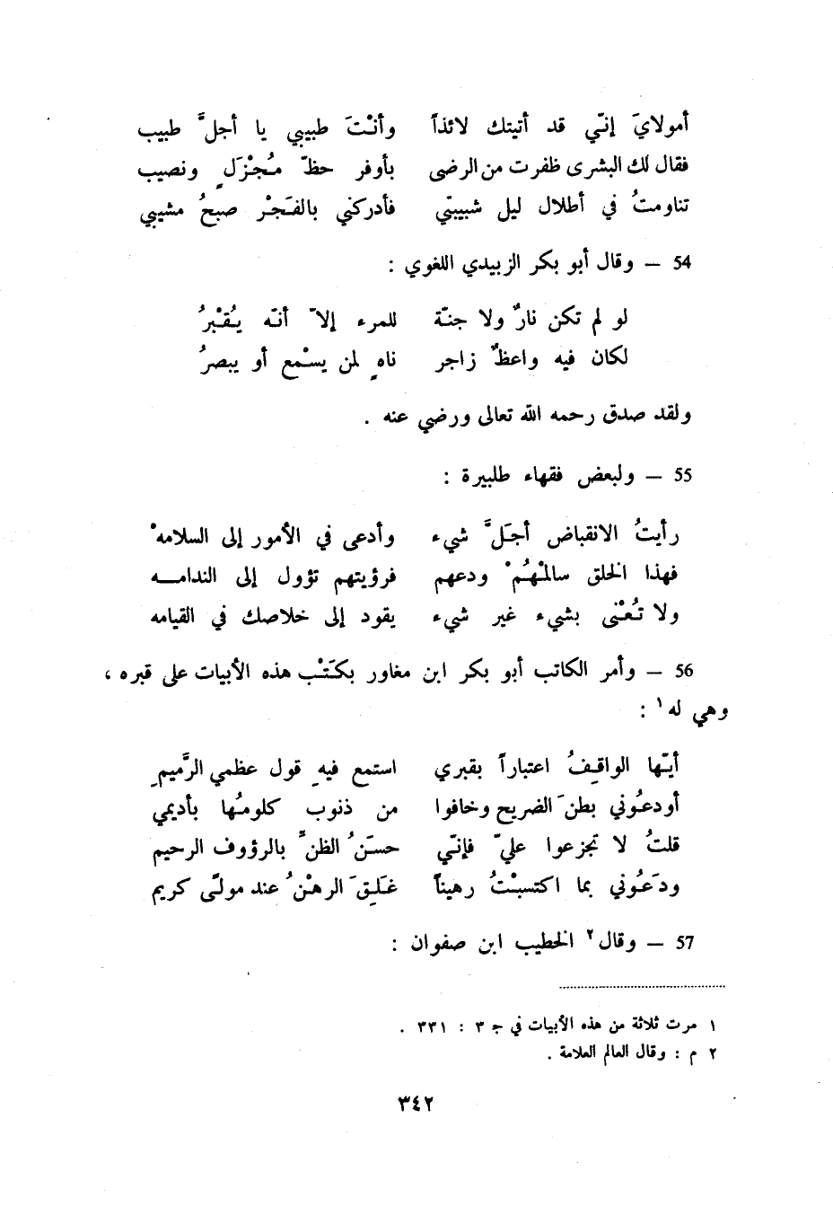 56 - وأمر الكاتب أبو بكر ابن مغاور بكتب هذه الأبيات على قبره، وهي له (1) :