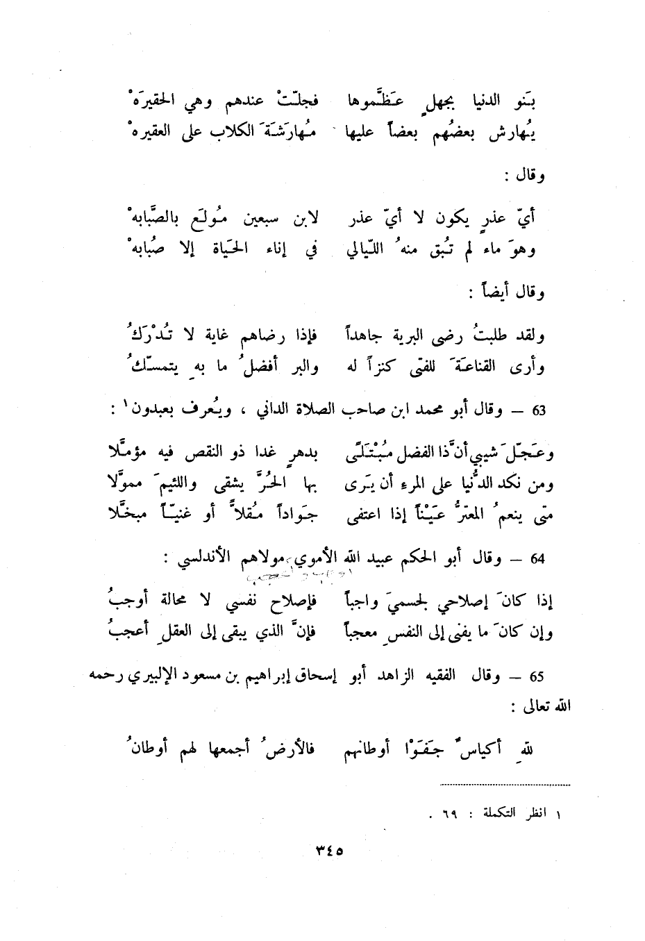 65 - وقال الفقيه الزاهد أبو إسحاق إبراهيم ابن مسعود الإلبيري رحمه الله تعالى: