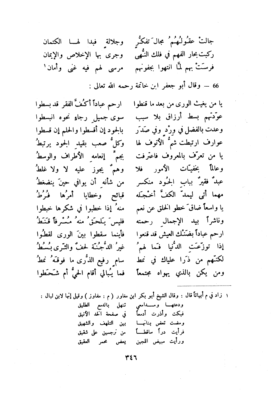 فرست بهم لما انتهوا بجفونهم ... مرسى لهم فيه غنى وأمان (1) 66 - وقال أبو جعفر ابن خاتمة رحمه الله تعالى: