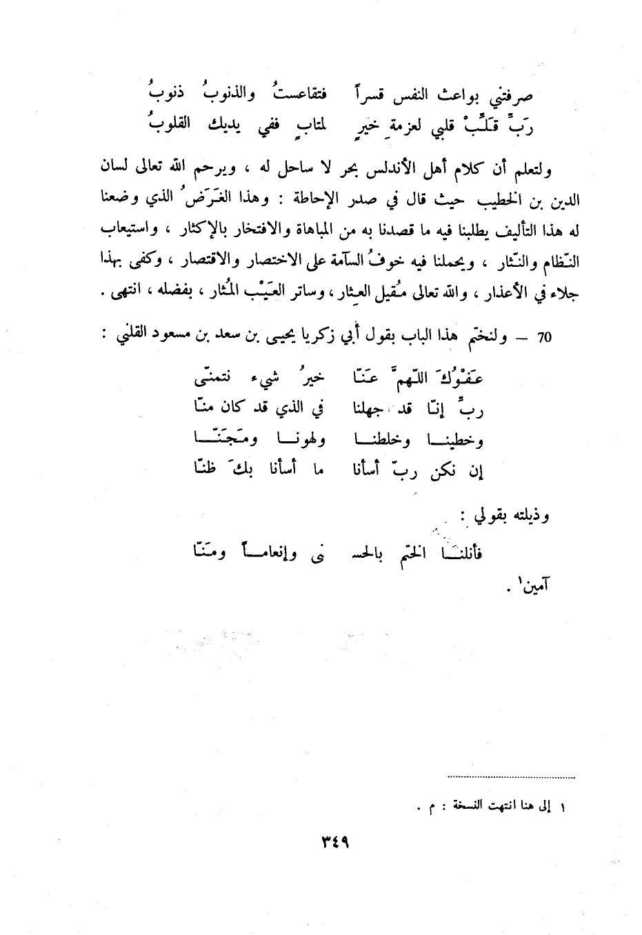 70 - ولنختم هذا الباب بقول أبي زكريا يحيى بن سعد بن مسعود القلني: