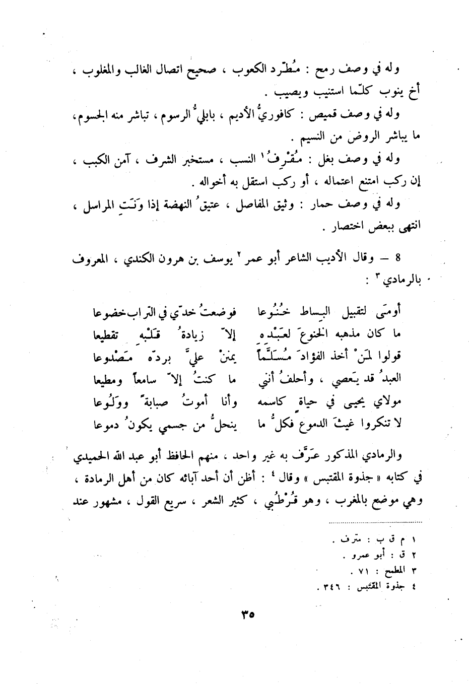 8 - وقال الأديب الشاعر ابو عمر (2) يوسف بن هرون الكندي، المعروف بالرمادي (3) :