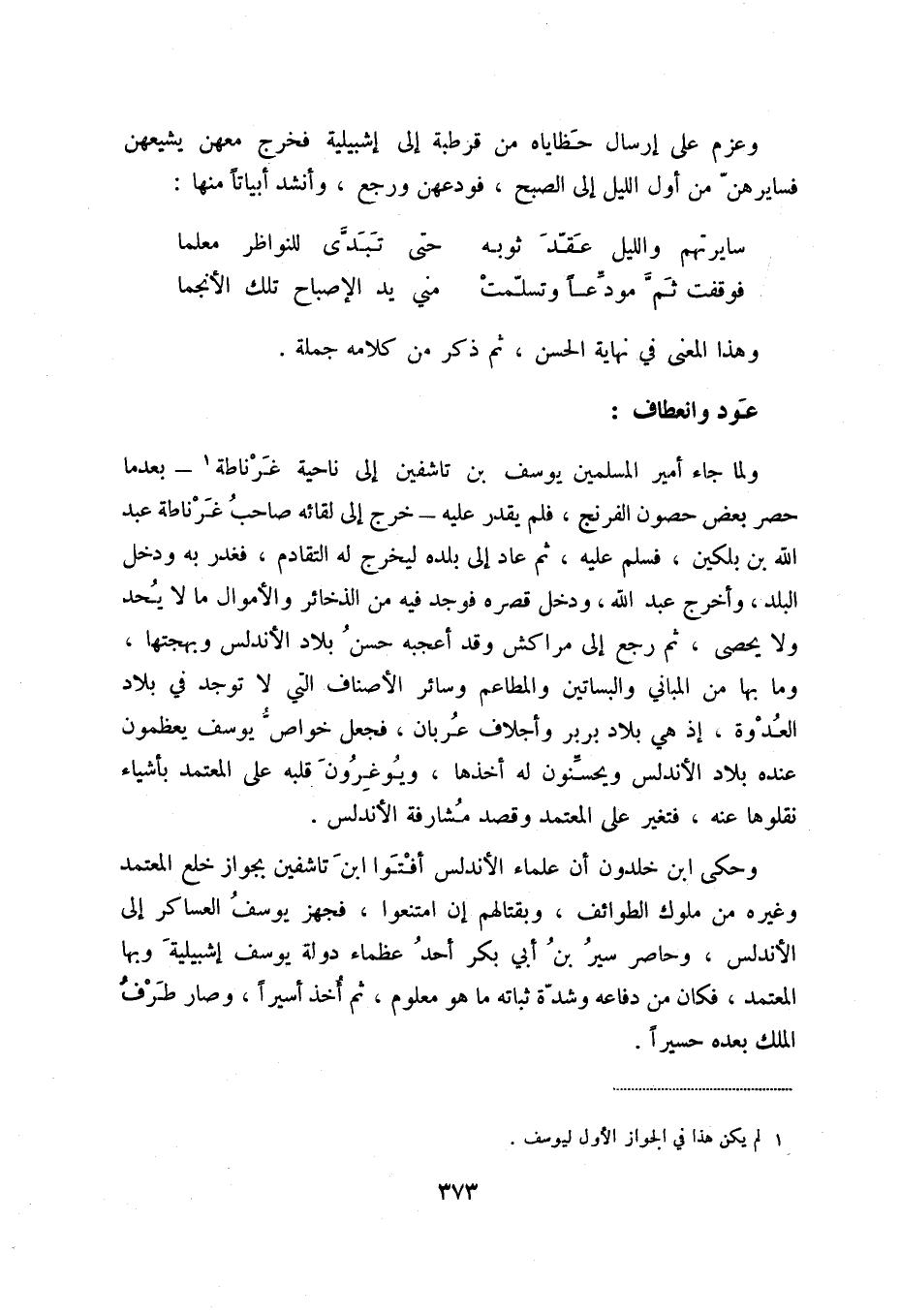 وعزم على إرسال حظاياه من قرطبة إلى إشبيلية فخرج معهن يشيعهن فسايرهن من أول الليل إلى الصبح، فودعهن ورجع، وأنشد أبيتاً منها: