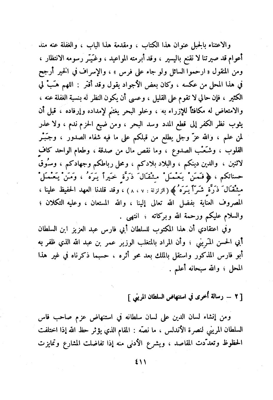 2 - رسالة أخرى في استنهاض السلطان المريني