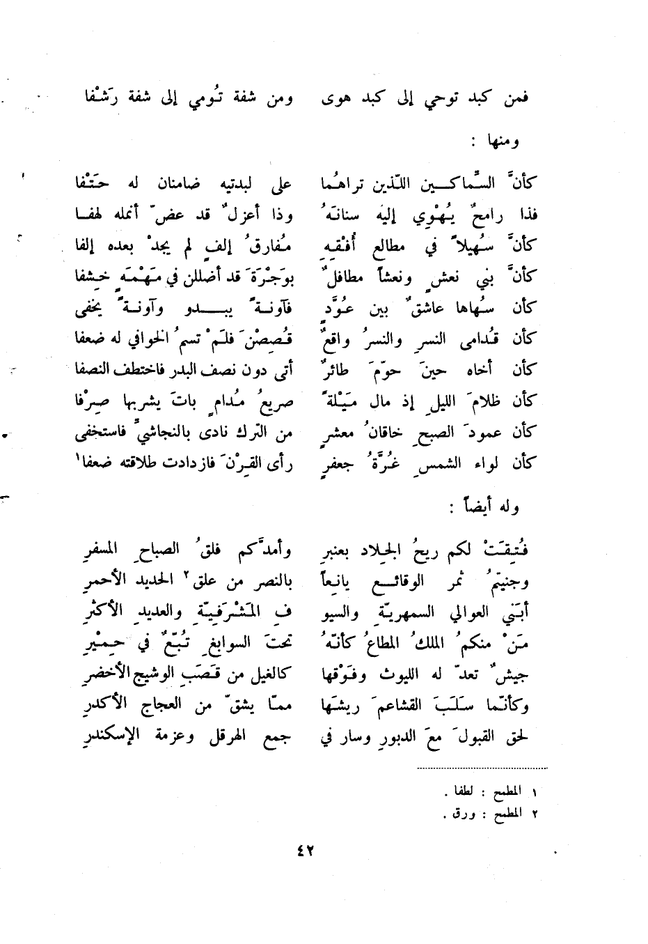 فمن كبد توحي إلى كبد هوى ... ومن شفة تومي إلى شفة رشفا ومنها: