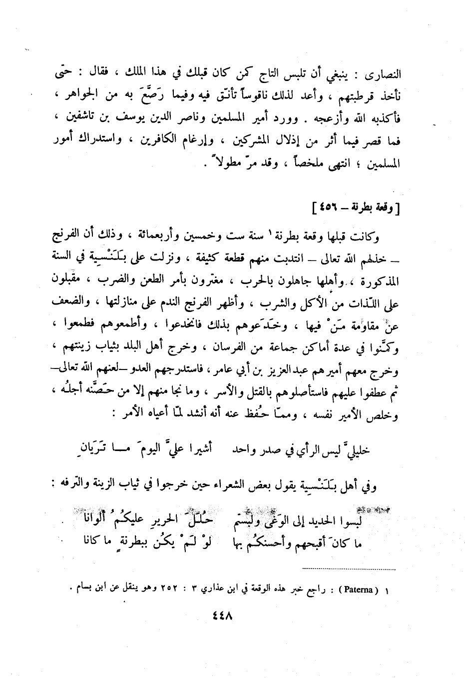 (1) (Paterna) : راجع خبر هذه الوقعة في ابن عذاري 3: 252 وهو ينقل عن ابن بسام.