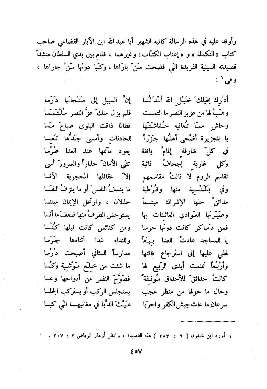 (1) أورد ابن خلدون (6: 283) هذه القصيدة، وانظر أزهار الرياض 2: 207.