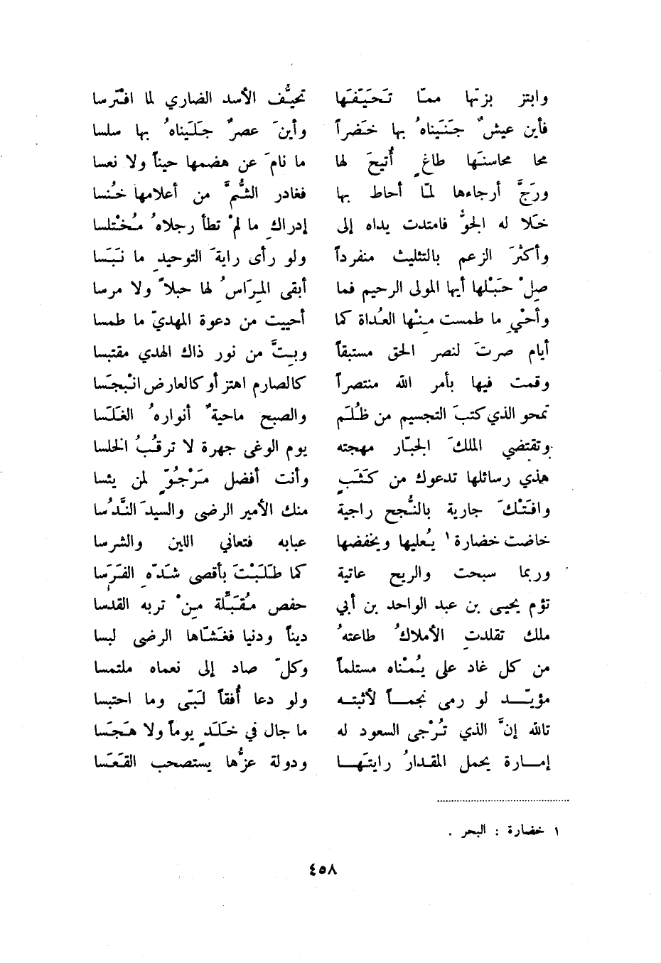 خاضت خضارة (1) يعليها ويخفضها ... عبابه فتعاني اللين والشرسا وربما سبحت والريح عاتية كما طلبت بأقصى شده الفرسا