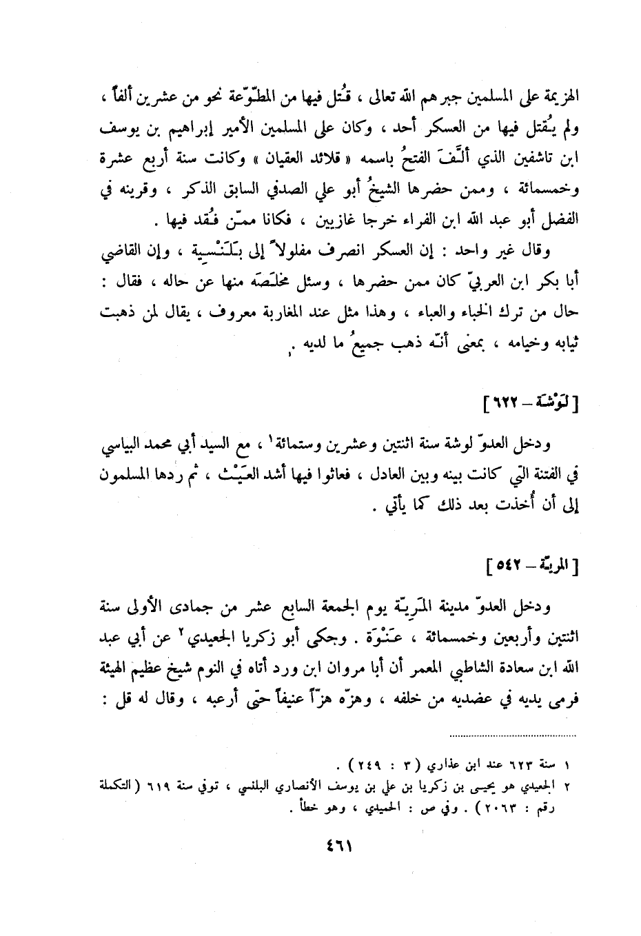 (2) الجعيدي هو يحيى بن زكريا بن علي بن يوسف الأنصاري البلنسي، توفي سنة 619 (التكملة رقم: 2063) . وفي ص: الحميدي، وهو خطأ.