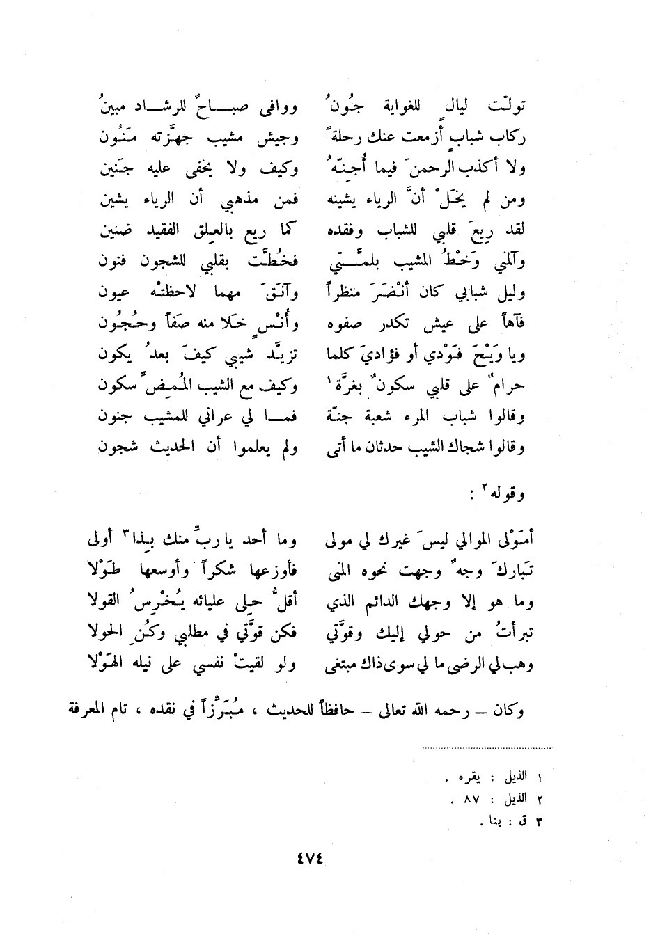 حرام على قلبي سكون بغرة (1) ... وكيف مع الشيب الممض سكون وقالوا شباب المرء شعبة جنة فما لي عراني للمشيب جنون