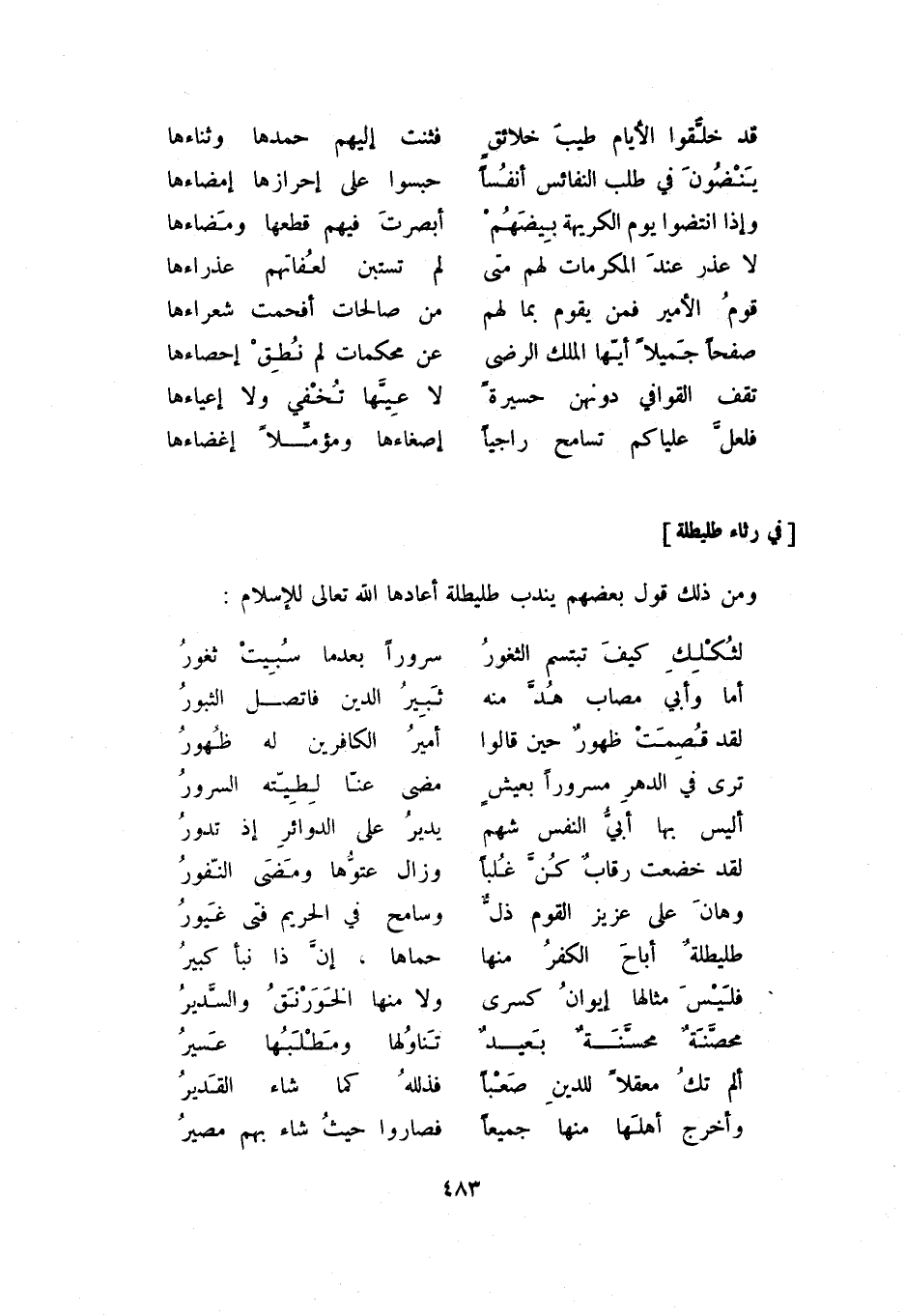 ومن ذلك قول بعضهم يندب طليطلة أعادها الله تعالى للإسلام: