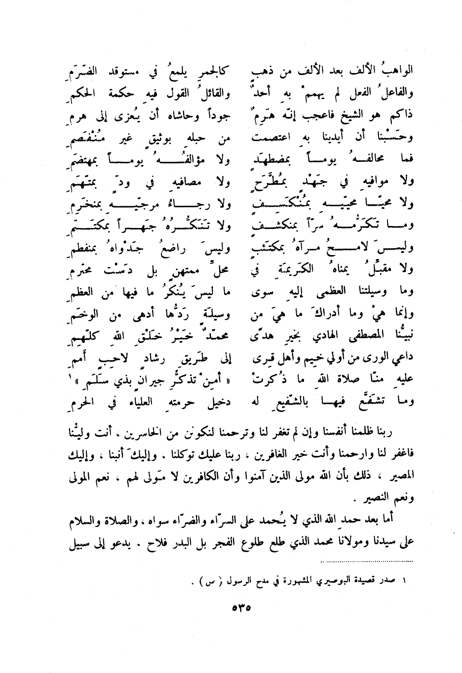 (1) صدر قصيدة البوصيري المشهورة في مدح الرسول (ص) .