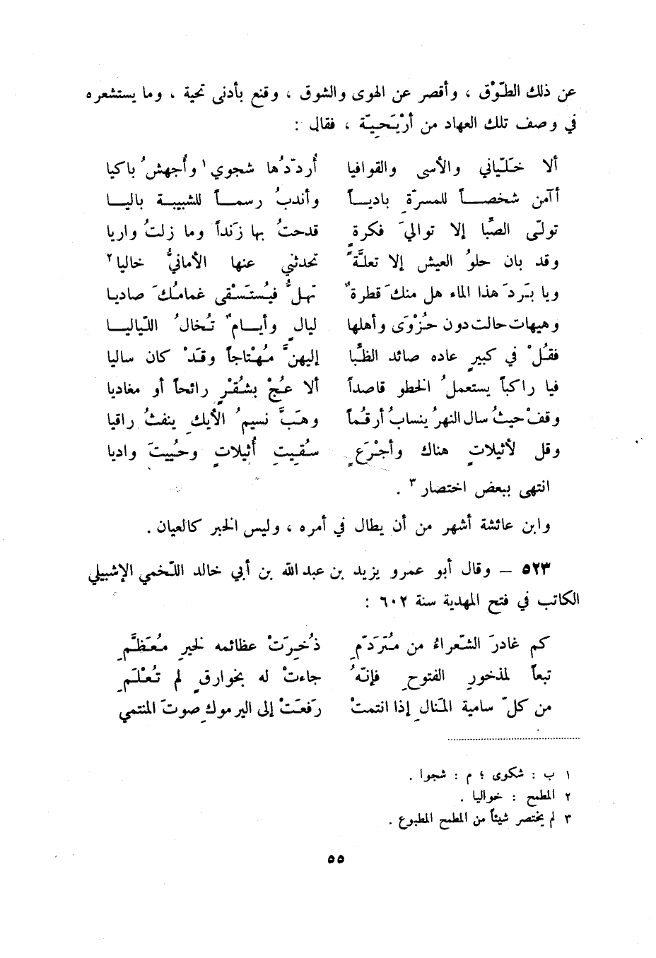 عن ذلك الطوق، وأقصر عن الهوى والشوق، وقنع بأدنى تحية، وما يستشعره في وصف تلك العهاد من أريحية، فقال: