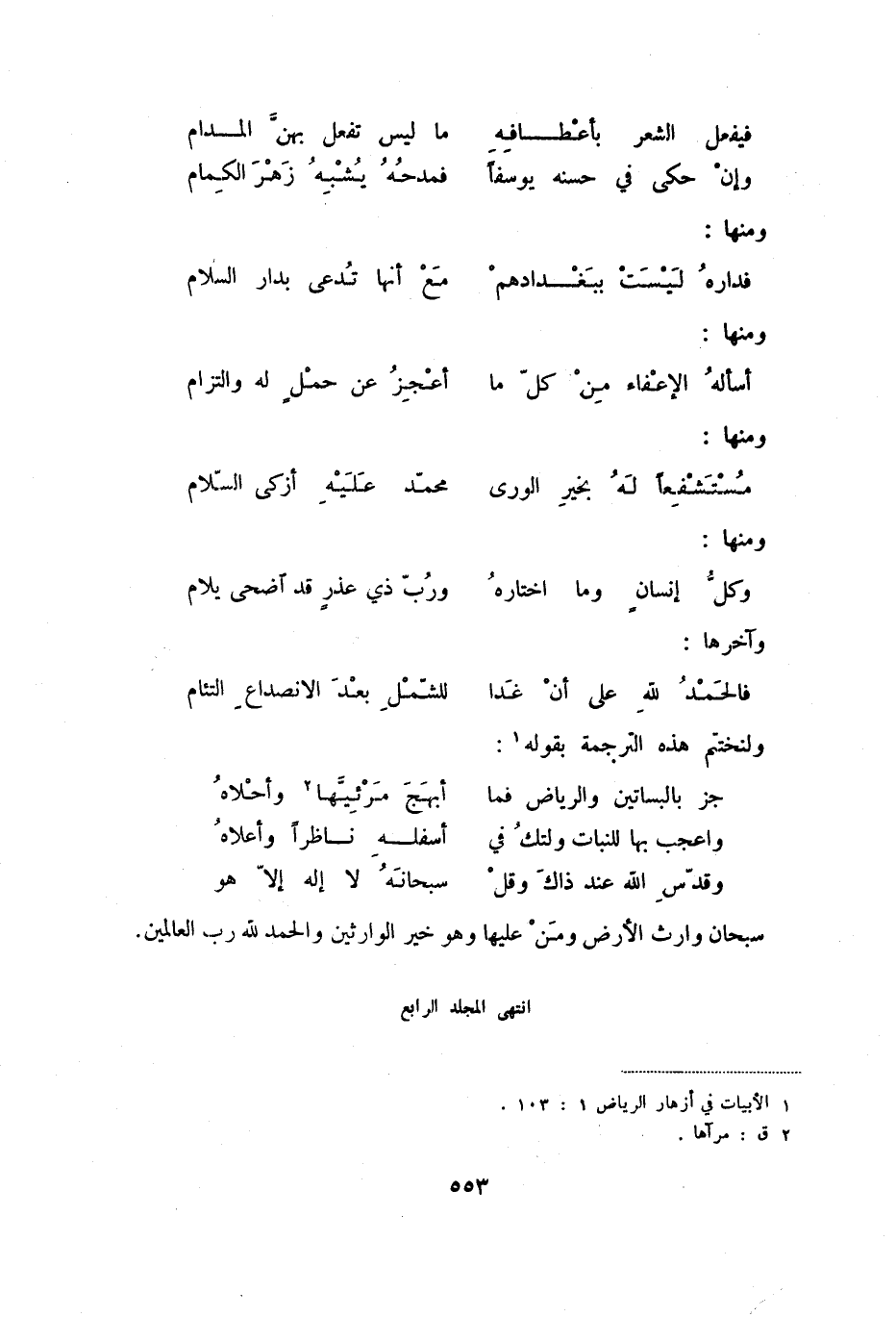 فالحمد لله على أن غدا ... للشمل بعد الانصداع التئام ولنختم هذه الترجمة بقوله (1) :
