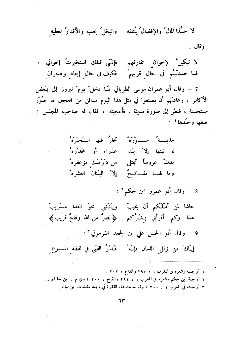 هذا وكم أقرأني بشركم ... {نصر من الله وفتح قريب} 9 - وقال أبو الحسن علي بن الجعد القرموني (3) :