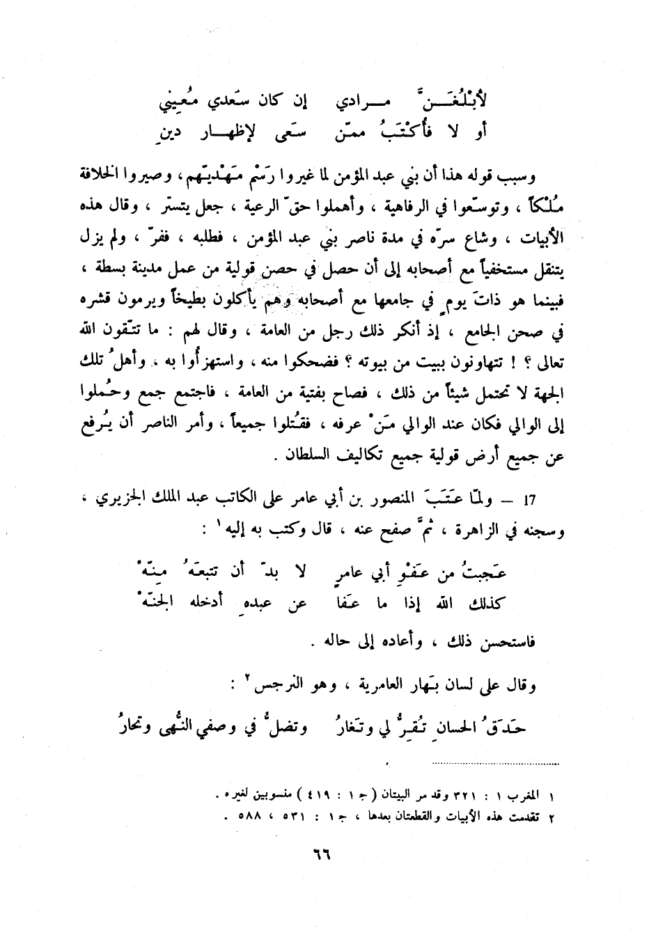 17 - ولما عتب المنصور بن أبي عامر على الكاتب عبد الملك الجزيري، وسجنه في الزاهرة، ثم صفح عنه، قال وكتب به إليه (1) :